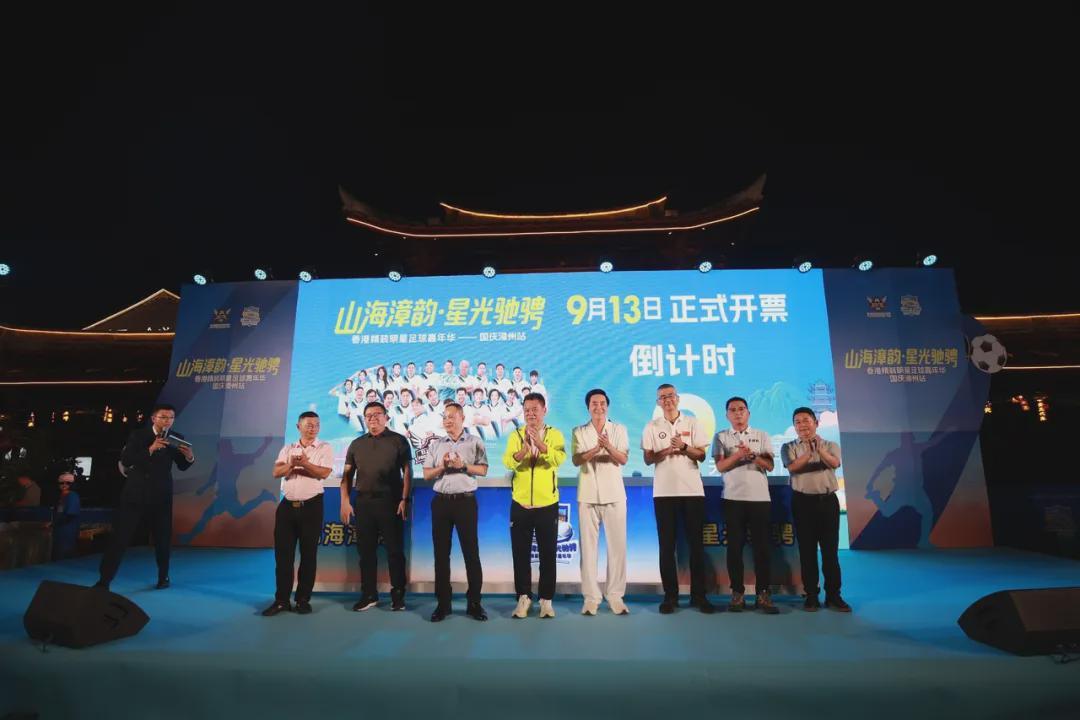 9月5日晚,“山海漳韵·星光驰骋 香港精装明星足球嘉年华——国庆漳州站”发布会在漳州古城举办。香港精装明星足球队成员代表,知名演员陈百祥、陈庭威亲临现场,向广大市民和球迷发出热情邀约。
