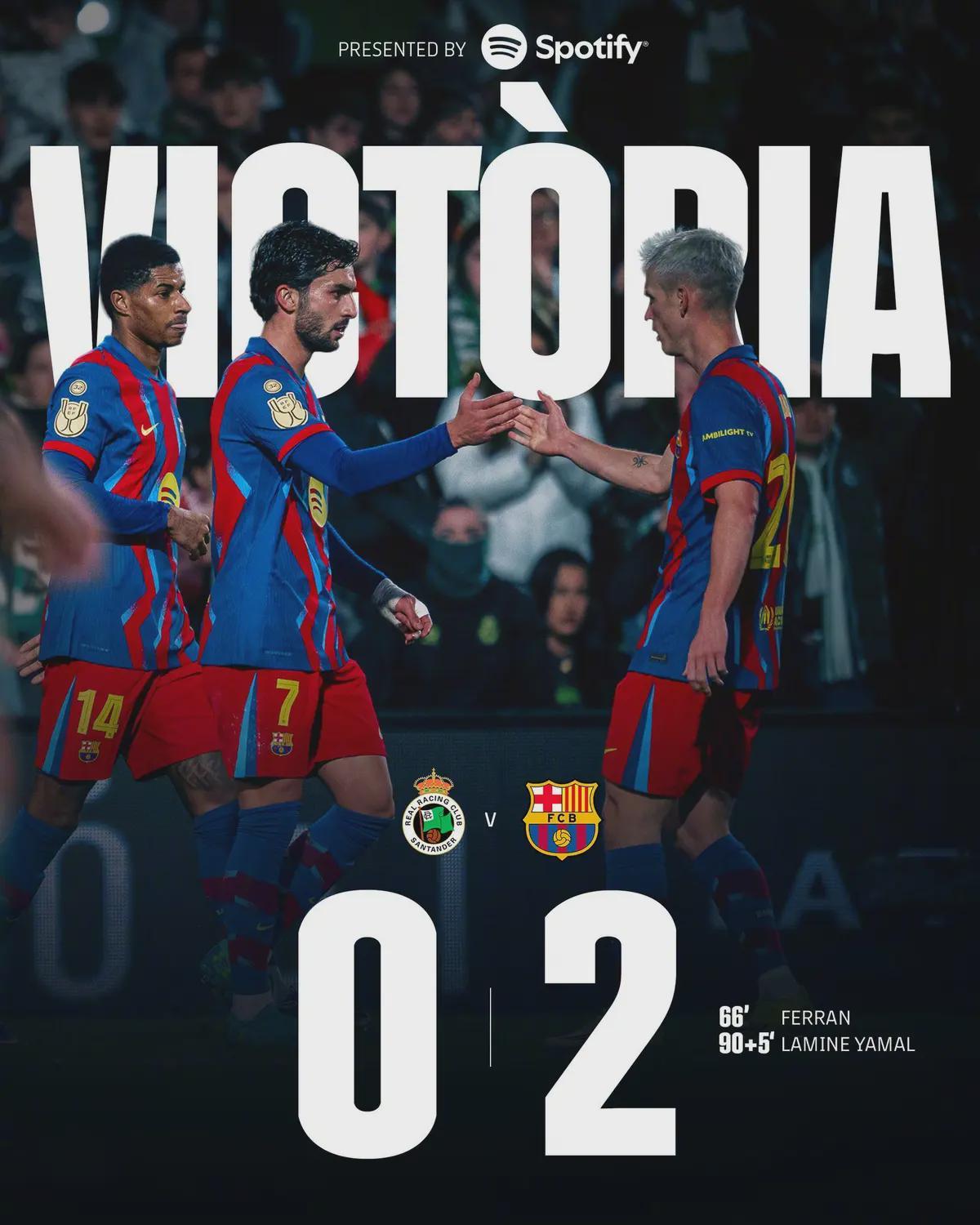 错失扳平良机的桑坦德竞技很快受到惩罚,亚马尔在补时第5分钟的进球彻底终结了比赛悬念。